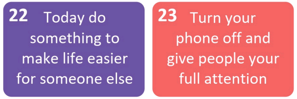 Call the team on 0300 323 0181 if you want further details. Or visit: https://www.actionforhappiness.org/ to find out more about Action for Happiness. Below are the actions you can do for the next few days, and the full calendar is available here.